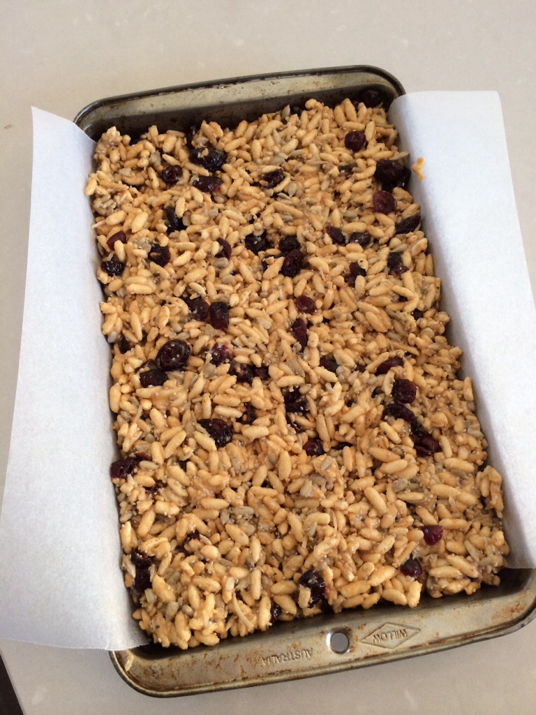 Sort of a waaaaaay healthier version of a peanut butter Rice Krispie square, the original version of this recipe was sourced from The Veg Kitchen blog: a fantastic resource for Vegans and Vegetarians, or anyone really who loves good, healthy and real food. Find the link here.