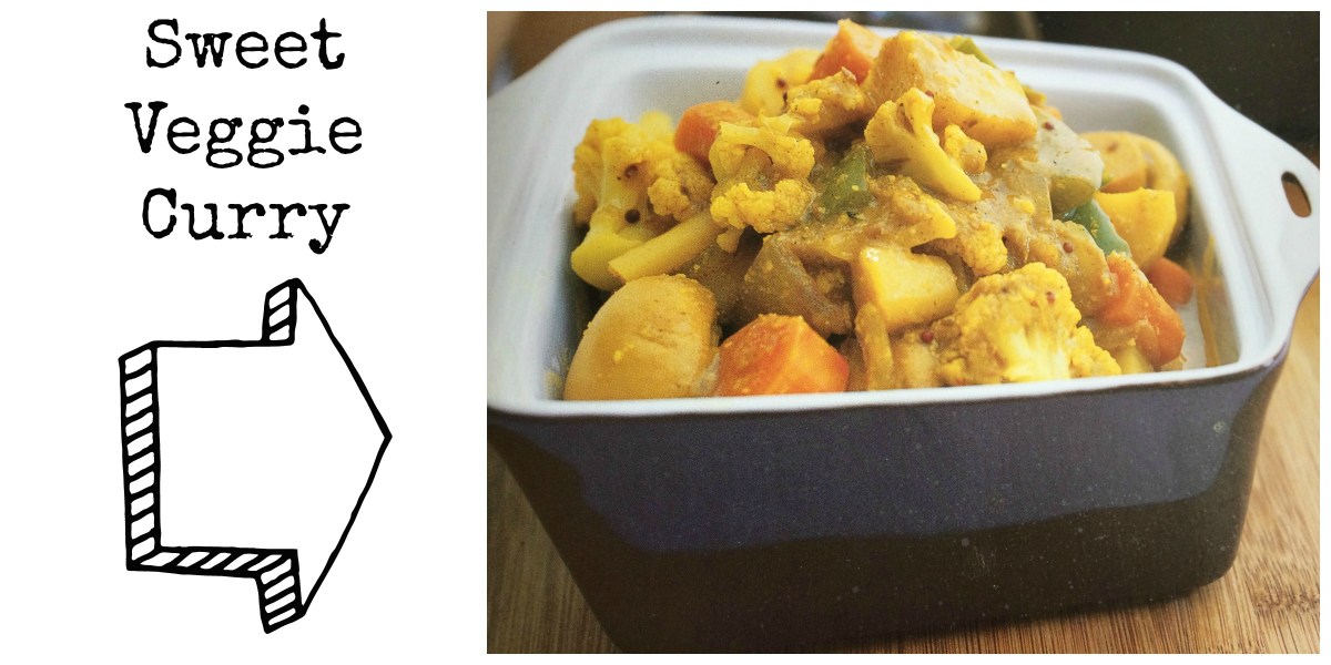 Not being much of a fan of chaos, I went for the latter option. I created an open invitation to all members of my MamaBake chapter, inviting them to a Vegetarian meal swap hosted at my house. A few weeks later, 5 other women I had never met before in my life turned up at my house at the agreed time with very large pots of food to share amongst us, and an hour later my freezer was stocked with obscene amounts of pasta primavera, dahl, veggie frittata, chilli and lentil soup. For my contribution, I made this sweet curry below: