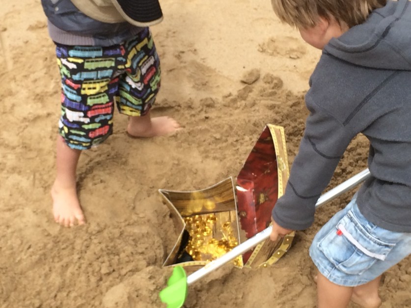 The next day, Big Daddy and I had prepared a pirate treasure hunt on the beaches of Jan Juc, complete with treasure map and buried treasure. Together with just one special friend, Master C “found” a message in a bottle leading the boys to the location of the pirate booty, stealthily buried while the kids were busy chasing waves during low tide.