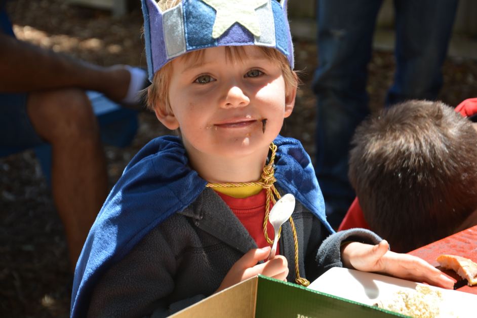 I made the birthday crown and cape over the course of a few nights in the New Year. The crown is elasticised at the back so hopefully will fit for many more birthdays to come. Both the crown and the cape were easy to make, even with my modest crafting experience and skill. I bought the wool felt necessary for the crown from Winterwood Steiner Inspired Toys, and the rest of the supplies from Spotlight. For the cape, I purchased a length of minky in royal blue and some gold cord to tie at the neck, also from Spotlight.